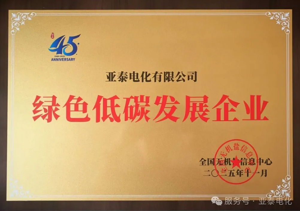 在化工行業向綠色可持續轉型的浪潮中,國家高新技術企業——亞泰電化有限公司始終堅守創新驅動、低碳發展的初心,近日再傳捷報:公司在2025年11月7日至9日第45屆無機酸堿鹽學術年會上被授予“綠色低碳發展企業”。
